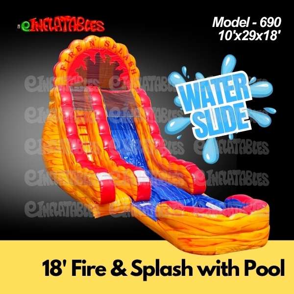 Turn up the heat and make a splash with our 18' Fire N Splash Slide with Pool! Featuring bold lava-inspired marble vinyl, this eye-catching inflatable is a true crowd magnet that brings excitement to every event.